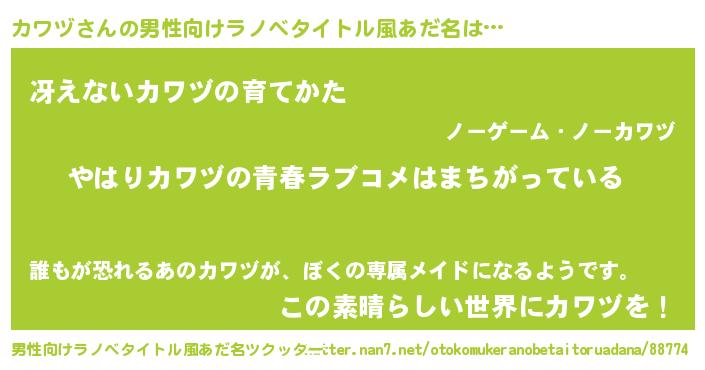 | 胡散臭い通販商品みたいなあだ名 | 『幸せが訪れる高級そうな壺…その名も「カワヅ」』 |