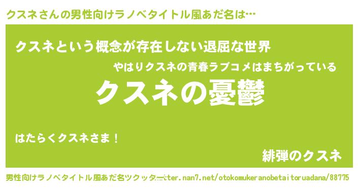 | 女子向けラノベタイトル風あだ名 | 『(仮)クスネのやんごとなき事情』 |