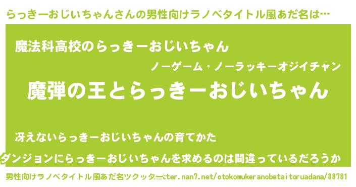 | 意味不明あだ名 | 『住所不定無職らっきーおじいちゃん(79歳)』 |