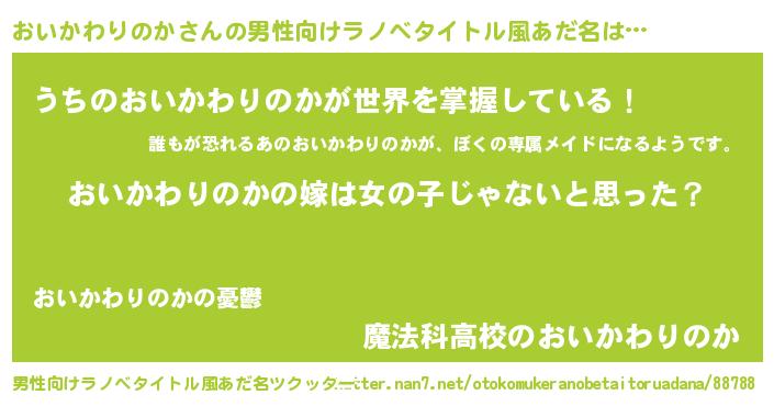 | 胡散臭い通販商品みたいなあだ名 | 『全米が絶賛したサプリメント…その名も「おいかわりのか」』 |