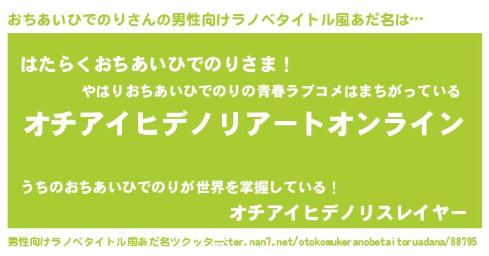 | 胡散臭い通販商品みたいなあだ名 | 『億万長者になれるブレスレット…その名も「おちあいひでのり」』 |