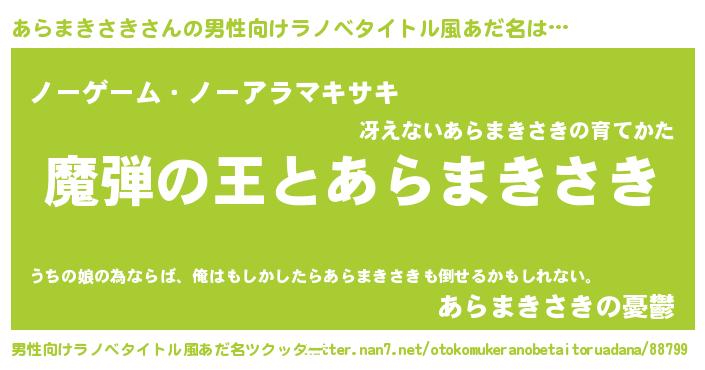 | 意味不明あだ名 | 『住所不定無職あらまきさき(8歳)』 |