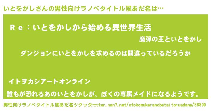 | ヒーロー風カッコイイあだ名 | 『黄金騎士イト』『超時空戦士イトヲカシ』 |