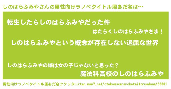 | ヘコむあだ名 | 『しのはらふみや(小並感)』『しのお』 |