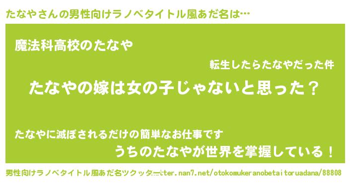 | ヒーロー風カッコイイあだ名 | 『天弓騎士タナ』『超時空戦士タナヤ』 |