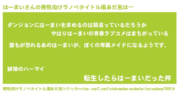 | ヘコむあだ名 | 『はーまい(遠い目)』『はー太郎』 |