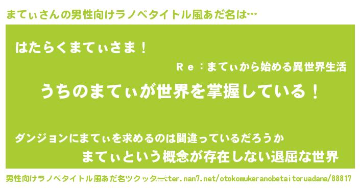 | 意味不明あだ名 | 『永久保存まてぃ』『自称まてぃ』 |