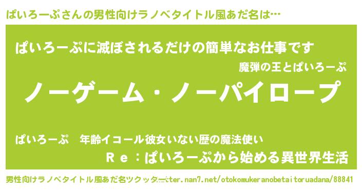 | ヘコむあだ名 | 『ぱいろーぷ(小並感)』『ぱいもー』 |