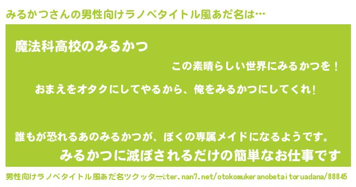| 女子向けラノベタイトル風あだ名 | 『みるかつ夫妻のなれそめ』 |