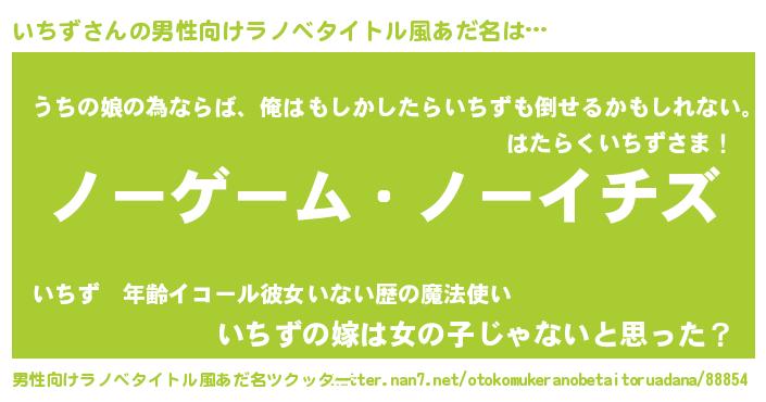 | 女子向けラノベタイトル風あだ名 | 『死神いちずの再婚』『いちず伯爵の花嫁』 |