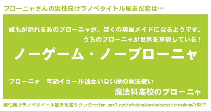 | 女子向けラノベタイトル風あだ名 | 『死神ブローニャの再婚』 |