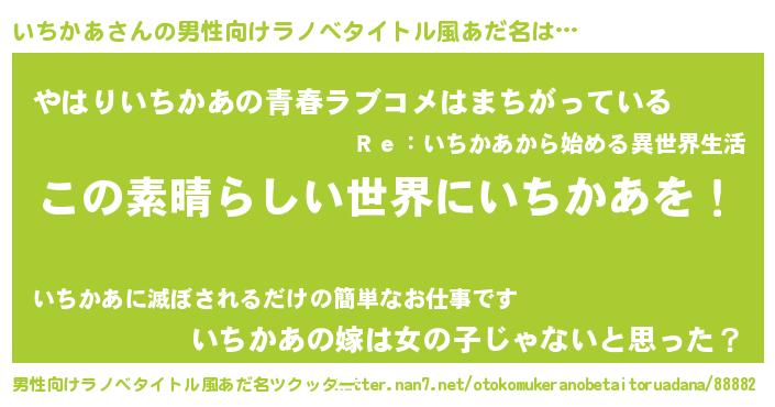 | 意味不明あだ名 | 『住所不定無職いちかあ(47歳)』 |