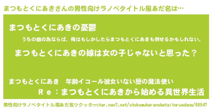 | 伝説のあだ名 | 『覚醒した魔法使いまつもとくにあき』 |