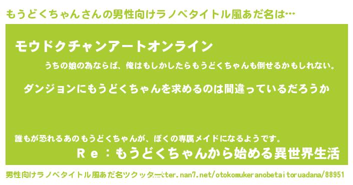 | ヒーロー風カッコイイあだ名 | 『暗黒騎士モウ』『ネオモウドクチャン』 |