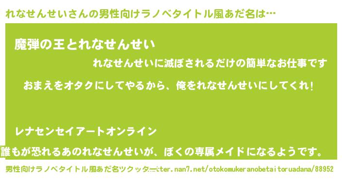 | 女子向けラノベタイトル風あだ名 | 『れなせんせい夫妻のなれそめ』 |