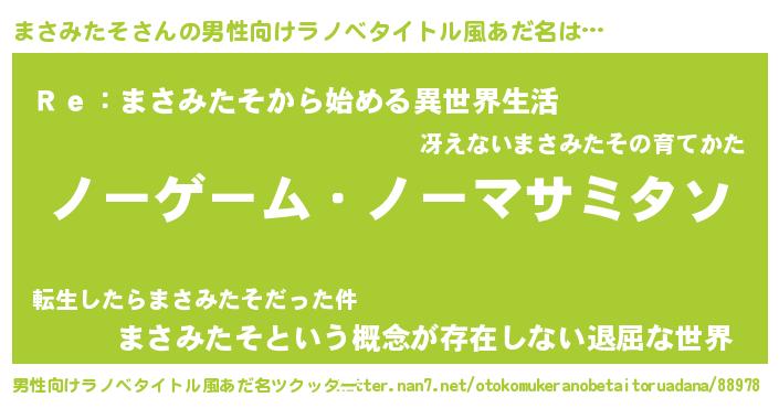 | 伝説のあだ名 | 『救世主となる占い師まさみたそ』 |
