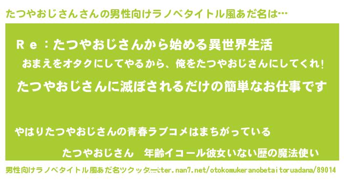 | 伝説のあだ名 | 『救世主となる錬金術士たつやおじさん』 |