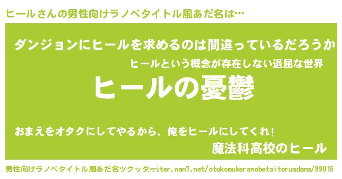| 胡散臭い通販商品みたいなあだ名 | 『必ず成功する霊験あらたかなお札…その名も「ヒール」』 |