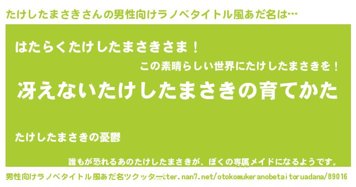 | 女子向けラノベタイトル風あだ名 | 『男装たけしたまさきの憂鬱な任務』 |