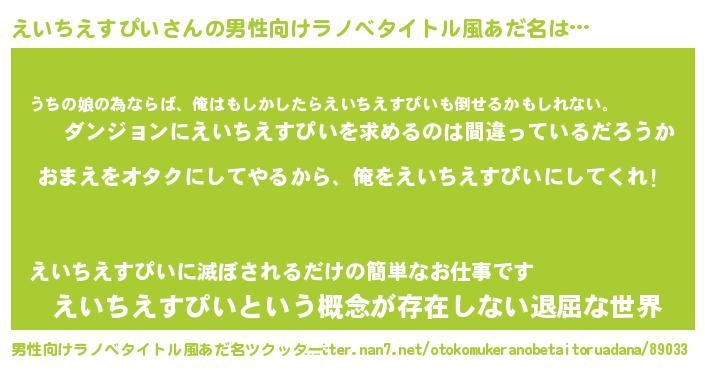 | 女子向けラノベタイトル風あだ名 | 『えいちえすぴい夫妻のなれそめ』 |