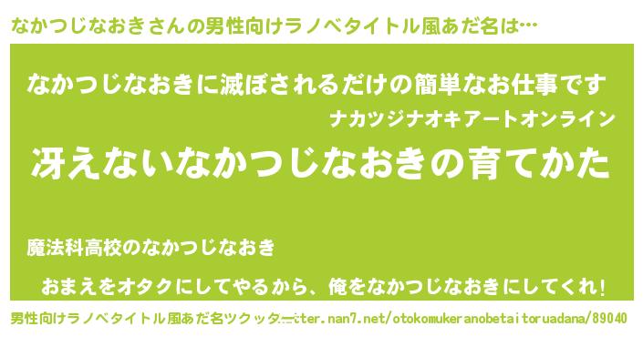 | 女子向けラノベタイトル風あだ名 | 『男装なかつじなおきの憂鬱な任務』 |