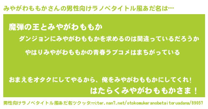 | 女子向けラノベタイトル風あだ名 | 『みやがわももかの雑貨屋さん』 |