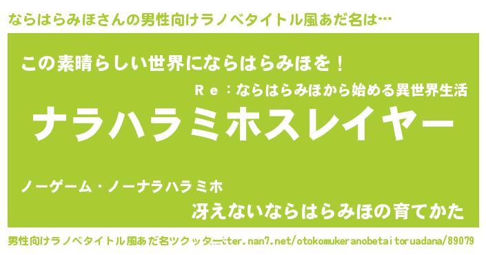 | ヘコむあだ名 | 『ならっふぃ~』『ならはらみほ(小並感)』 |
