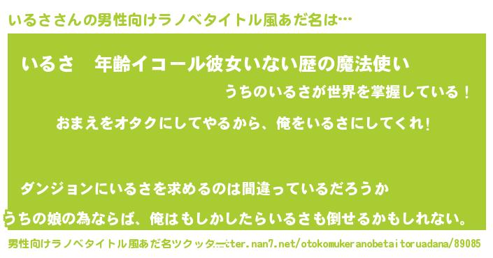 | 女子向けラノベタイトル風あだ名 | 『いるさ夫妻のなれそめ』 |