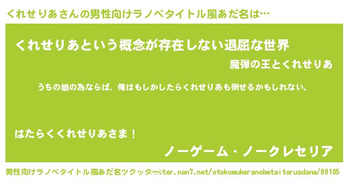 | 女子向けラノベタイトル風あだ名 | 『くれせりあの婚約者』 |