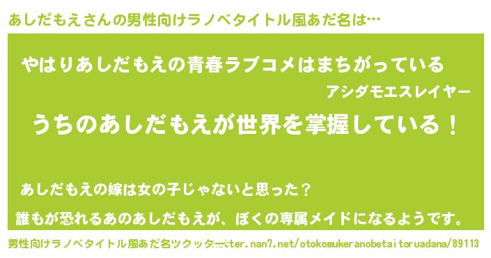 | 女子向けラノベタイトル風あだ名 | 『男装あしだもえの憂鬱な任務』 |