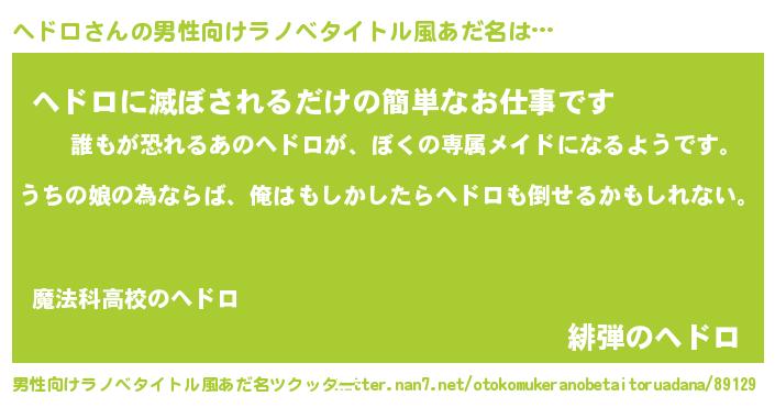 | ヒーロー風カッコイイあだ名 | 『ウルトラヘドロマン』『ネオヘドロ』 |