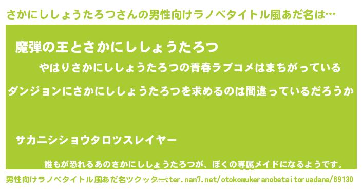 | 意味不明あだ名 | 『とにかく怪しいさかにししょうたろつ』 |