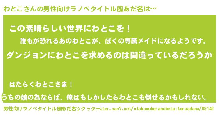 | 女子向けラノベタイトル風あだ名 | 『わとこは平凡を望む』 |