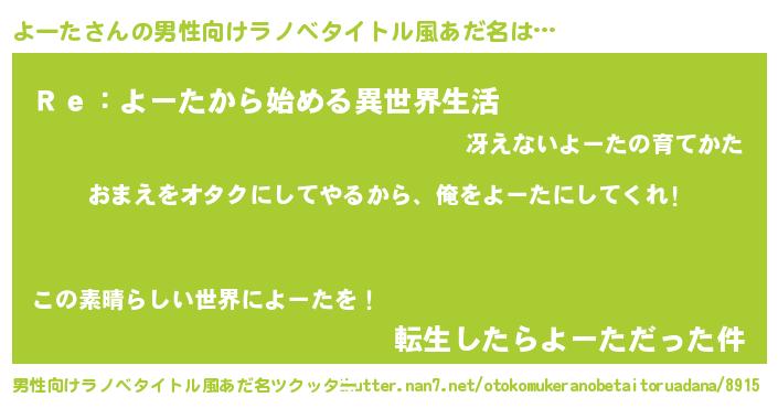 | ヒーロー風カッコイイあだ名 | 『愛の使者よーた』『サイバー戦士ヨータ』 |