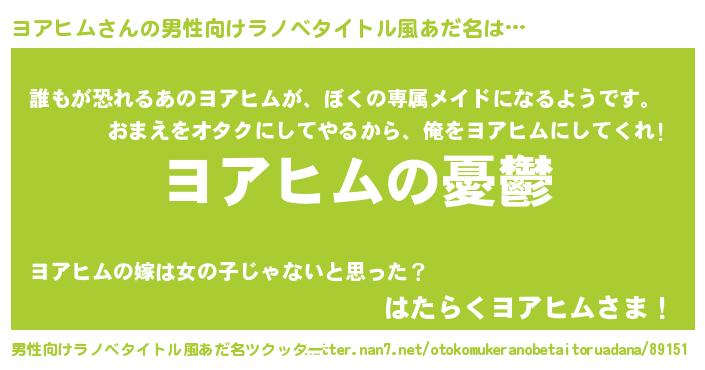 ヨアヒムさんの男性向けラノベタイトル風あだ名をツクッター!
