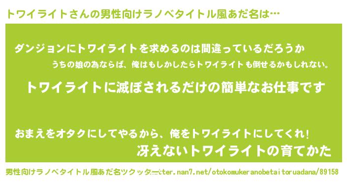 | 意味不明あだ名 | 『とにかく怪しいトワイライト』 |