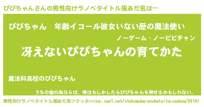 | 女子向けラノベタイトル風あだ名 | 『シンデレラぴぴちゃん家の靴箱館』 |