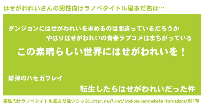 | 意味不明あだ名 | 『住所不定無職はせがわれい(79歳)』 |