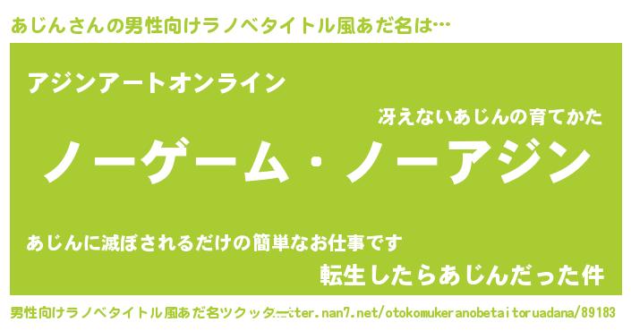 | 女子向けラノベタイトル風あだ名 | 『死神あじんの再婚』 |