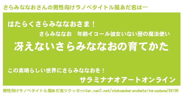 | 胡散臭い通販商品みたいなあだ名 | 『モテモテ間違いなし霊験あらたかなお札…その名も「さらみななお」』 |