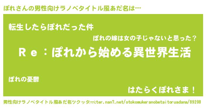 | 女子向けラノベタイトル風あだ名 | 『ぽれストレイドッグス』 |