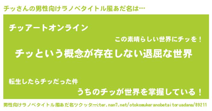 | 胡散臭い通販商品みたいなあだ名 | 『来世でも幸せになれる健康食品…その名も「チッ」』 |