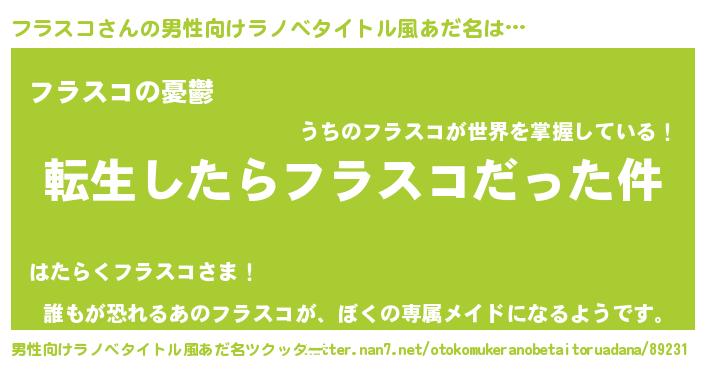 | 女子向けラノベタイトル風あだ名 | 『フラスコの玉の輿計画!』 |