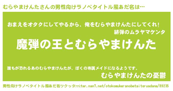 | 女子向けラノベタイトル風あだ名 | 『乙女ゲームの破滅フラグしかない悪役むらやまけんたに転生してしまった…』 |