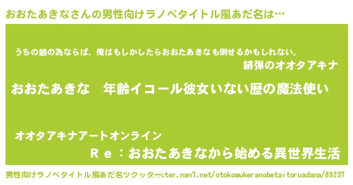 | 女子向けラノベタイトル風あだ名 | 『おおたあきなの玉の輿計画!』 |