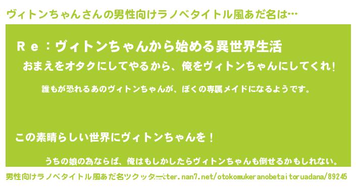 | 胡散臭い通販商品みたいなあだ名 | 『来世でも幸せになれる健康食品…その名も「ヴィトンちゃん」』 |