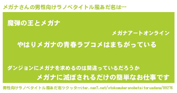 ヒーロー風カッコイイあだ名 | 『ウルトラメガナマン』『仮面メガダー』 |