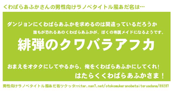 | 胡散臭い通販商品みたいなあだ名 | 『信頼と実績のペンダント…その名も「くわばらあふか」』 |