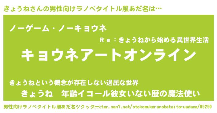 | 胡散臭い通販商品みたいなあだ名 | 『億万長者になれる水晶球…その名も「きょうね」』 |