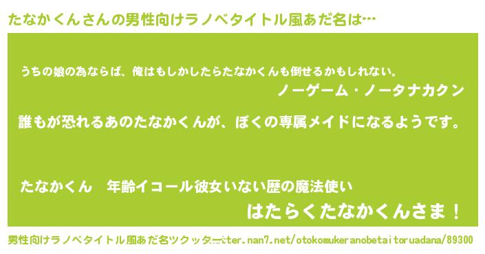 | 女子向けラノベタイトル風あだ名 | 『異世界でカフェたなかくんを開店しました。』 |